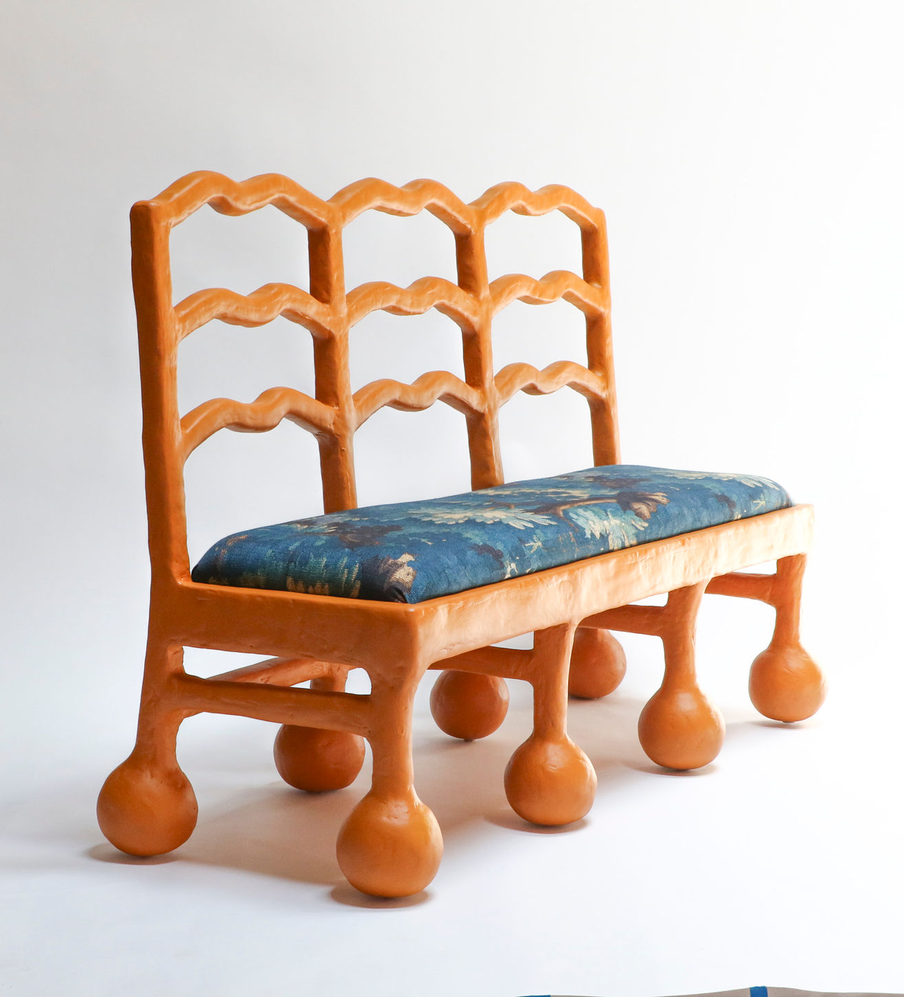Ideal for residential or boutique interior spaces, the Wave Bench challenges traditional design boundaries while remaining entirely usable. Each piece is made to order and is available in Orange or custom colors. The cushion is upholstered with custom woven fabric.
